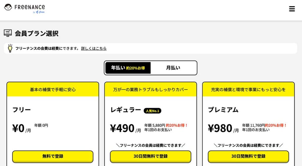 『FREENANCE(フリーナンス)』の料金プラン